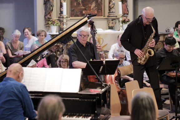 17.08.2025 - 6. Haller Musiksommer - Herz Jesu Kirche - 18:00 Uhr - Eintritt frei - Spende erbeten - LIBRA-Quartett - Lieder ohne Worte - Andreas Gummersbach (Saxophone) - Reinhold Westerheide (Percussion) - Wolfgang Tetzlaff (Kontrabass) - Olaf Kordes (Piano)